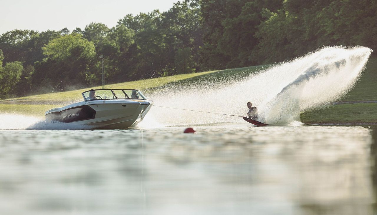 With perfected ergonomics and a thoughtful design, it sets the bar high and continues to lead the way in the industry. Rooted in heritage, but known for progression, the ProStar has set countless world records with the flattest wakes at any line length and at any speed. It remains the confident choice for families, offering practicality without compromising on performance. The MasterCraft ProStar is still the leader. And pulling farther ahead.