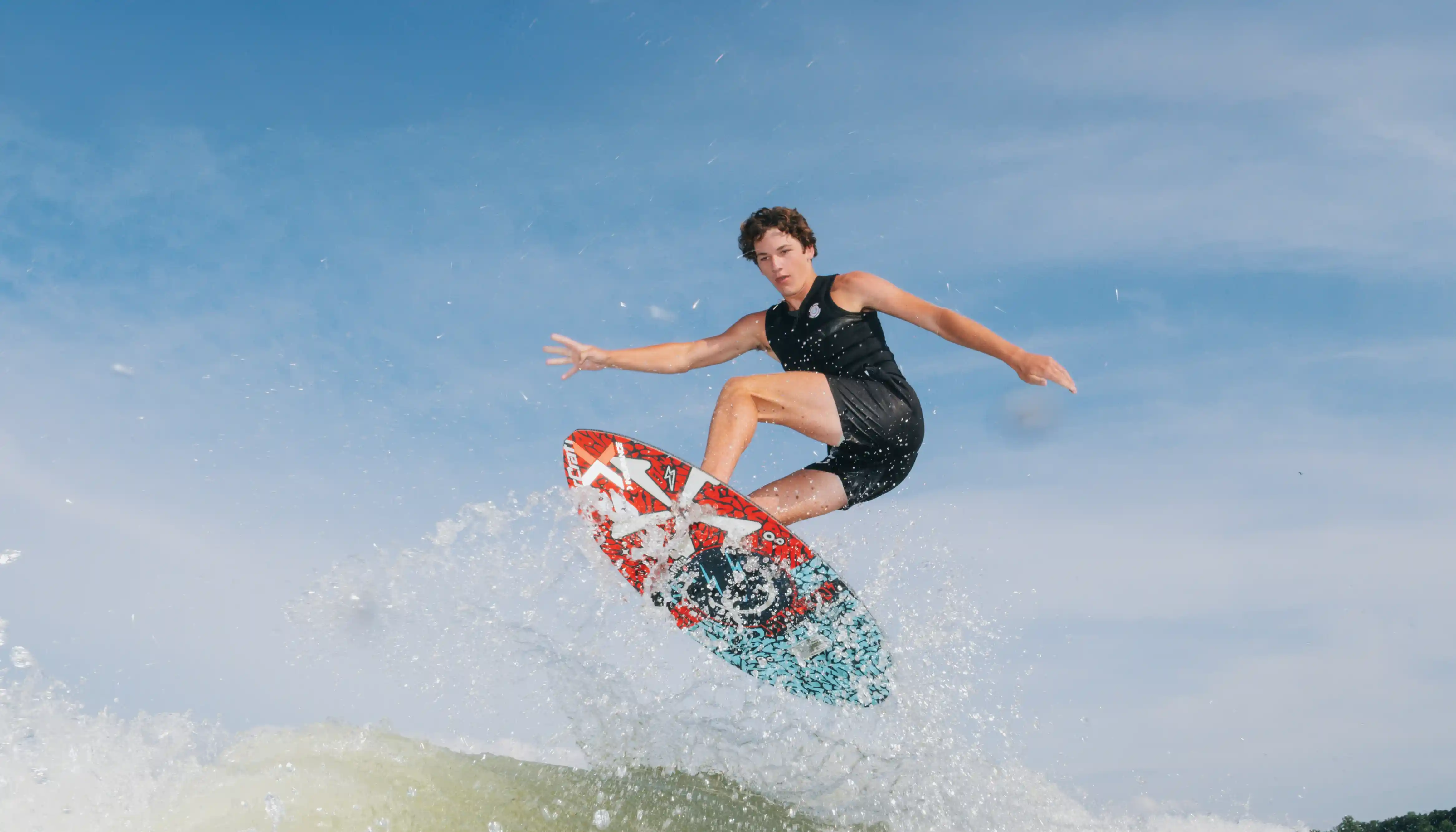 Jett's been on a board since he was 4 years old. He started out skateboarding, competing for years and had a blast. Jett met his coach, mentor, and best friend, Sean Silveira, at a golf tournament two years ago and went out to ride with him - and found out he had what it takes. Everything clicked on the water, just like it did at the skate parks. Jett's skateboard background gave him the knowledge and control to make a smooth transition to the water. He hasn’t stopped wakesurfing since the first time he rode with Sean. Now, he's part of a world class team of athletes that speaks for itself, and he couldn’t be more stoked.