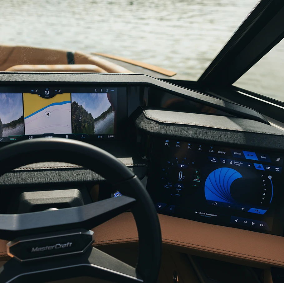 Every MasterCraft comes equipped with state-of-the-art MasterCraft SoundStage audio system and the most intuitive dashes.