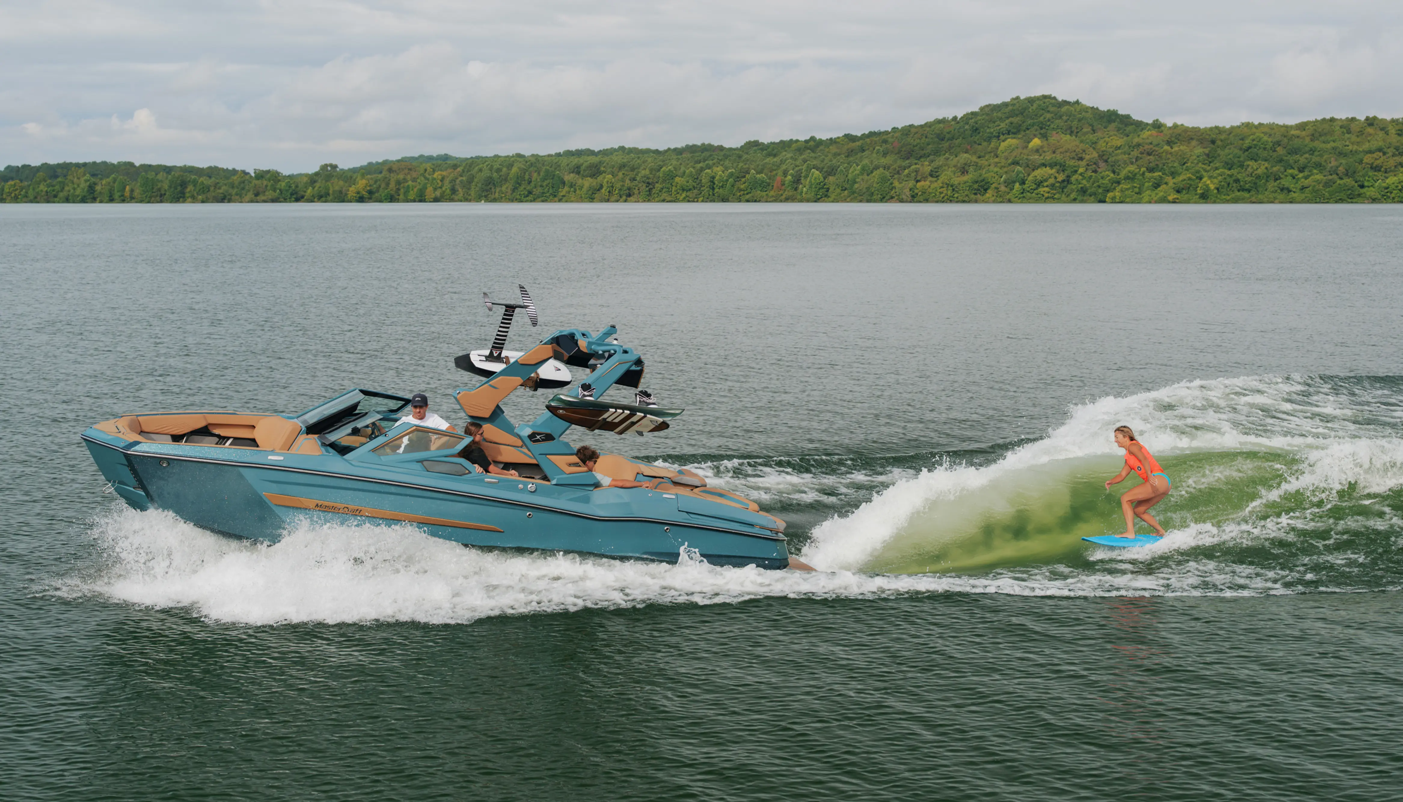 MasterCraft’s patented Switchback Ballast Tank automatically shifts ballast to optimize symmetry for the perfect wave every time.